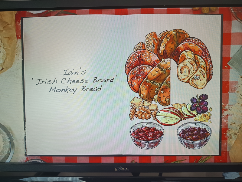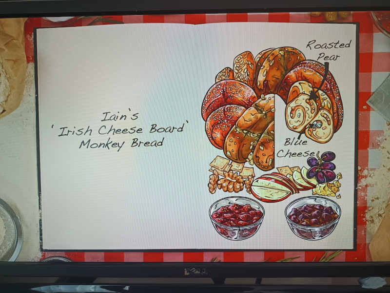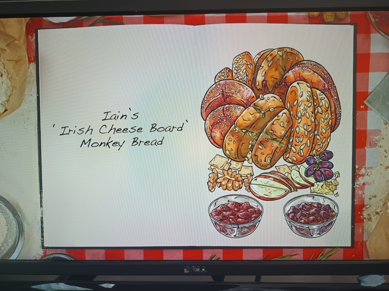 Using Episode 3 of Series 16 as our reference, consider the following four images of Iain's 'Irish Cheese Board' Monkey Bread: [2]